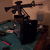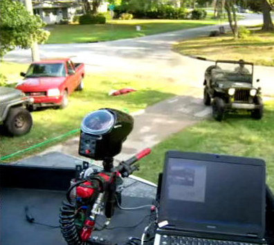 8th VersionOct 5th, 2008 Came up with the idea to use an ATX case as the case that houses everything when it's packed up. The case was $100 which is about the same amount I would've spent building it from scratch anyway. The gun platform mounts quickly without the need for tools. The laptop folds out on a hinged platform that also has the wiring and other electronics mounted on it. The camera is mounted in the uppermost part of the front face and is protected from paintball hits. Rain proofing will not be difficult but I haven't gotten to it yet. Improvements: